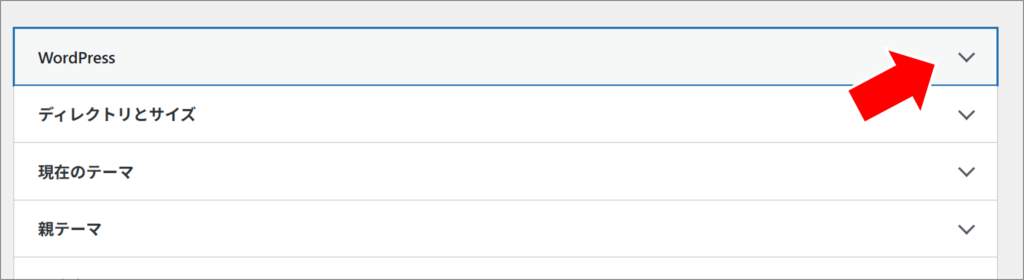 「WordPress」をクリックすると、詳細が表示され、利用中のバージョンを確認することができます。