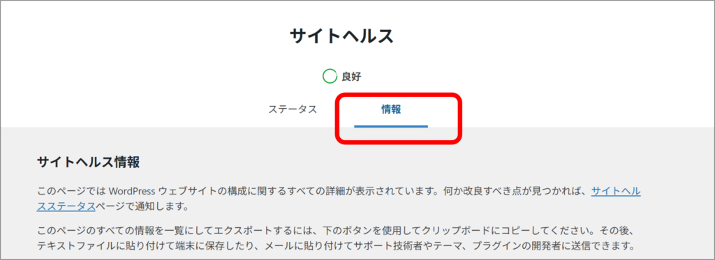 表示されたサイトヘルス画面で「情報」をクリック。