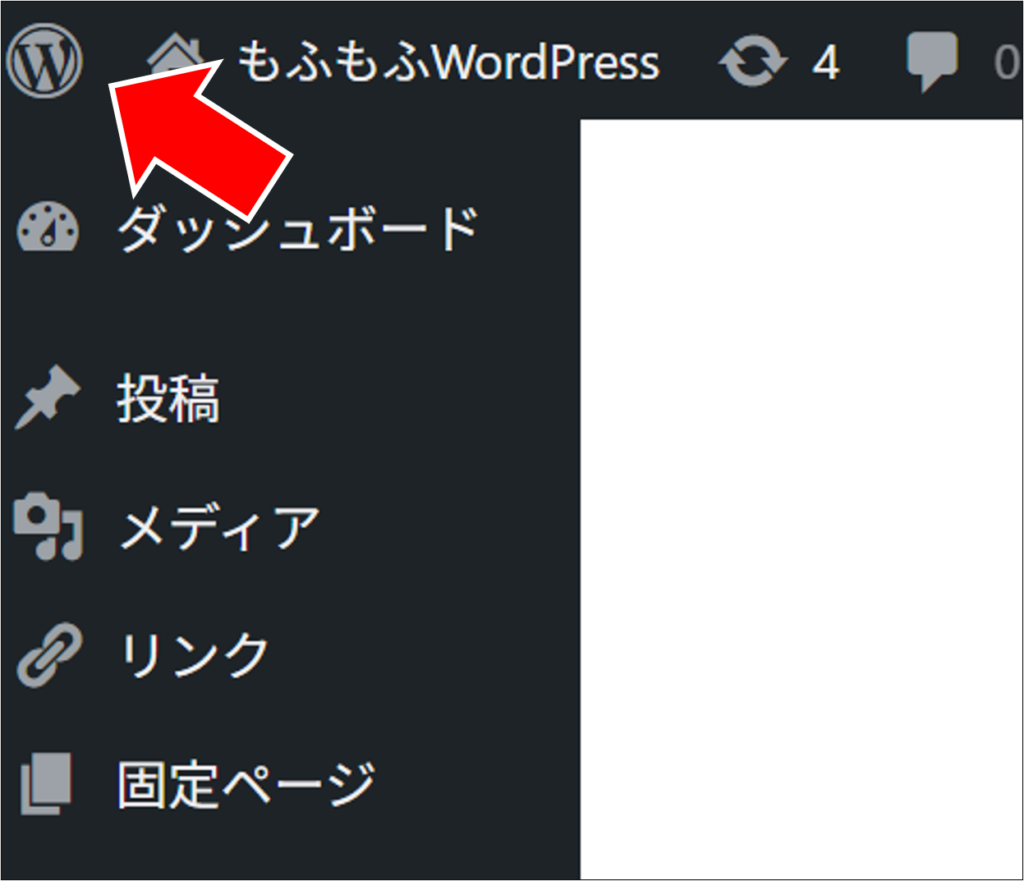 管理画面の左上にある、WordPressマークをクリックすると、「WordPress について」が表示され、現在利用しているWordPressのバージョンが表示されます。